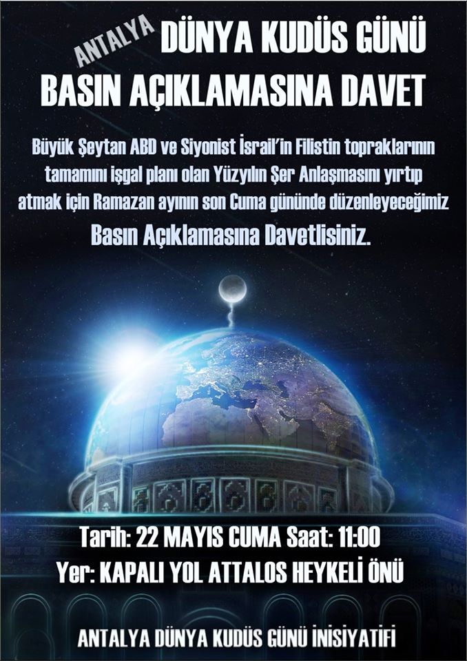 Antalya Dünya Kudüs Günü Basın Açıklamasına Davet