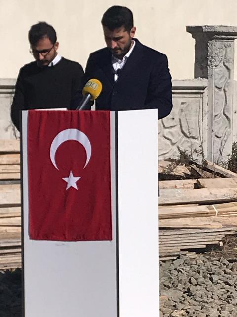 Ali Çalar Hocamızın Kur'an-ı Kerim tilaveti ve okunun milli marşın ardından cami derneği adına kürsüye davet edilen Hacı Cengiz Özüm, temeli atılan mescidin kuruluş amacına dair bilgiler paylaştı.