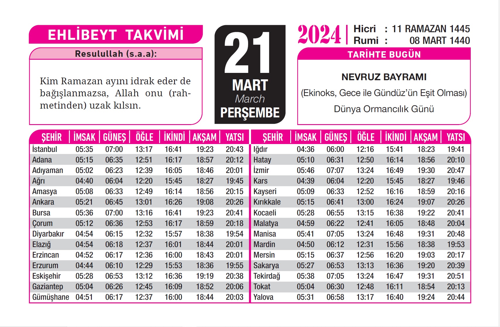 / Türkiye Takvimi