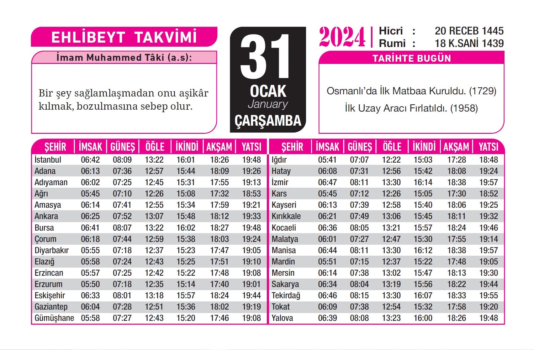 2026 Ehlibeyt Takvimi