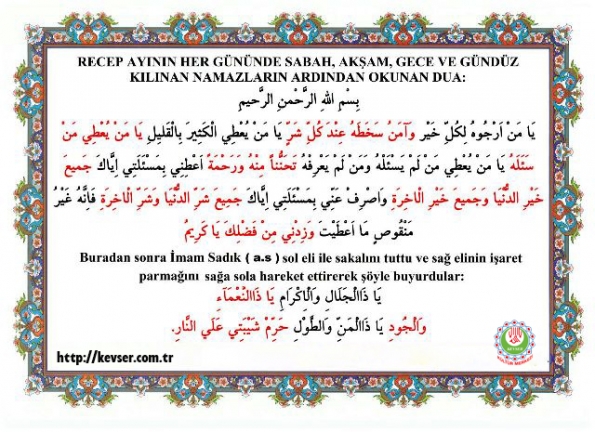 Recep Ayının Her Gününde Günlük Namazların Ardından Okunan Dua