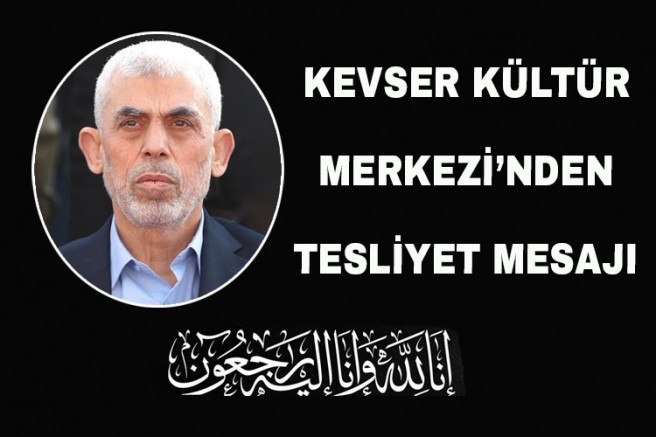 Kevser Kültür Merkezi olarak, olarak bu kalleşçe cinayeti şiddetle kınarken, Yüce Allah'tan şehit Yahya Sinvar için rahmet ve Asr’ın veli ve sahibi İmam-ı Zaman’a (a.f), Ayetullah Seyyid Ali Hamanei’ye, İslam alemine, direniş cephesine, Hamas'ın yiğit savaşçılarına, dünyadaki tüm özgürlükçü insanlara, Lübnan halkına ve Şehit Yahya Sinvar’ın ailesine başsağlığı diliyoruz.