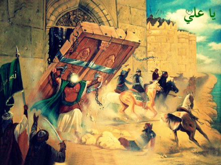 Ebu Rafi’ şöyle nakletmektedir: Kalenin kapısının yanında bir adam Hz. Ali’ye (a.s) bir darbe vurarak, kalkanını elinden düşürdü. Bunun üzerine Hz. Ali (a.s) kalenin yanındaki bir kapıyı eline aldı ve kendine kalkan olarak kullandı. Savaş süresince bu kale kapısı kalkan olarak elinde durdu. Nihayetinde Allah, onun vasıtasıyla fethi nasip etti. Hz. Ali (a.s) (Merhab kalesinin) fetih müjdesini Allah Resulüne (s.a.a) müjdeledi.[11] Başka bir rivayette Hz. Ali’ye (a.s) darbe vuran Yahudi’nin Merhab olduğu zikredilmiştir.[12] Savaştan sonra ancak kırk veya yetmiş kişinin o kapıyı kaldırabildikleri nakledilmiştir.[13] Hayber’in Hz. Ali’nin (a.s) eliyle fethedilmesi onun fazilet ve erdemlerinden sayılmaktadır ve raviler bu konuda hemfikirler.[14]Yahudilerin iki kahramanının ve Naim kalesinde olan diğerlerden birkaçının öldürülmesinden sonra Hayber’in tamamının fethi kolaylaştı.[15]
