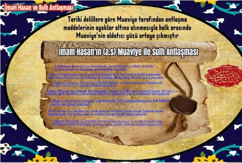 *Muaviye kendisinden sonra kimseyi halife olarak tayin etmeyecek ve hilafet kendisinden sonra İmam Hasan’a (a.s) veya zorunlu bir durumda kardeşi İmam Hüseyin’e (a.s) geçecektir.