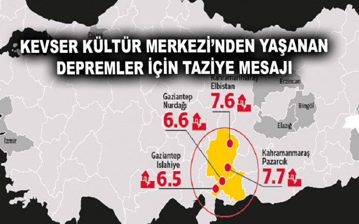 Kahramanmaraş'ta meydana gelen ve birçok ilimizde hissedilen deprem nedeniyle tüm vatandaşlarımıza geçmiş olsun dileklerimizi iletiyor, bu felaketi en az hasarla atlatmak için dua ediyoruz. Yaşanan bu felaketten dolayı dayanışma içinde olarak, birlik ve beraberlik içinde yaralarımızı hep beraber sarmalıyız.