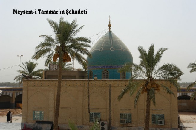 Birinci Rivayet: Meysem’in tutuklanması ve şehadeti hakkında iki rivayet bulunmaktadır. Birinci rivayette İbn-i Ziyad, Yezid b. Muaviye’nin emri ile –Ehlibeytin ciddi taraftarlarından olduğunu biliyordu- Meysem’i tutuklatarak darağacına astırır.[13]