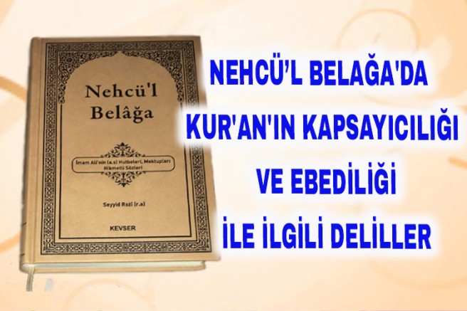Nehcü’l Belağa, Kur'an'ın kardeşi ve yol katedenlerin Kur'an-ı Kerim'i doğru ve hakiki bir şekilde tanımasında yardımcı olabilecek en iyi ve saf kaynaklardan biridir. İmam Ali'nin (a.s) bakışında Kur'an, insanın mutluluk ve kemale ulaşması için ihtiyaçlarını göz ardı etmeyen, kapsayıcı ve ebedi bir kitaptır. Hz. Ali (a.s) çeşitli yerlerde ve güzel ve hikmetli yöntemlerle bu özelliği tasvir etmiştir. Nehcü’l Belağa'nın bir hutbesinde [1], Kur'an ayetlerine dayanarak bu kapsayıcılığı açıkça açıklamıştır.